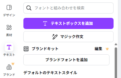 1.左側メニューから「テキスト」をクリック。